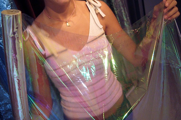 Este folosita în principal în vitrine, mai ales mototolita și șifonata în diverse moduri, datorită proprietăților sale reflectorizante și irizate.