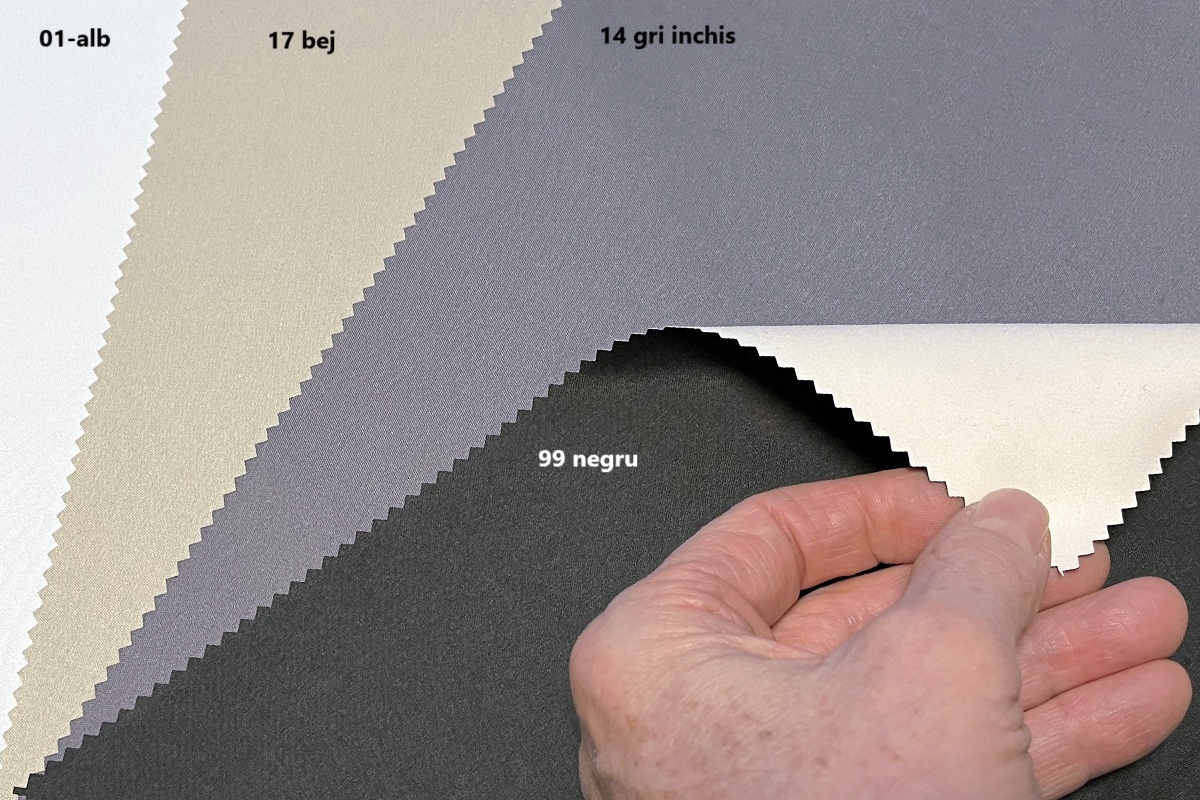 Când țesătura este folosită pentru a întuneca ferestrele, stratul alb are scopul de a reflecta lumina soarelui și de a limita încălzirea țesăturii și a mediului intern.