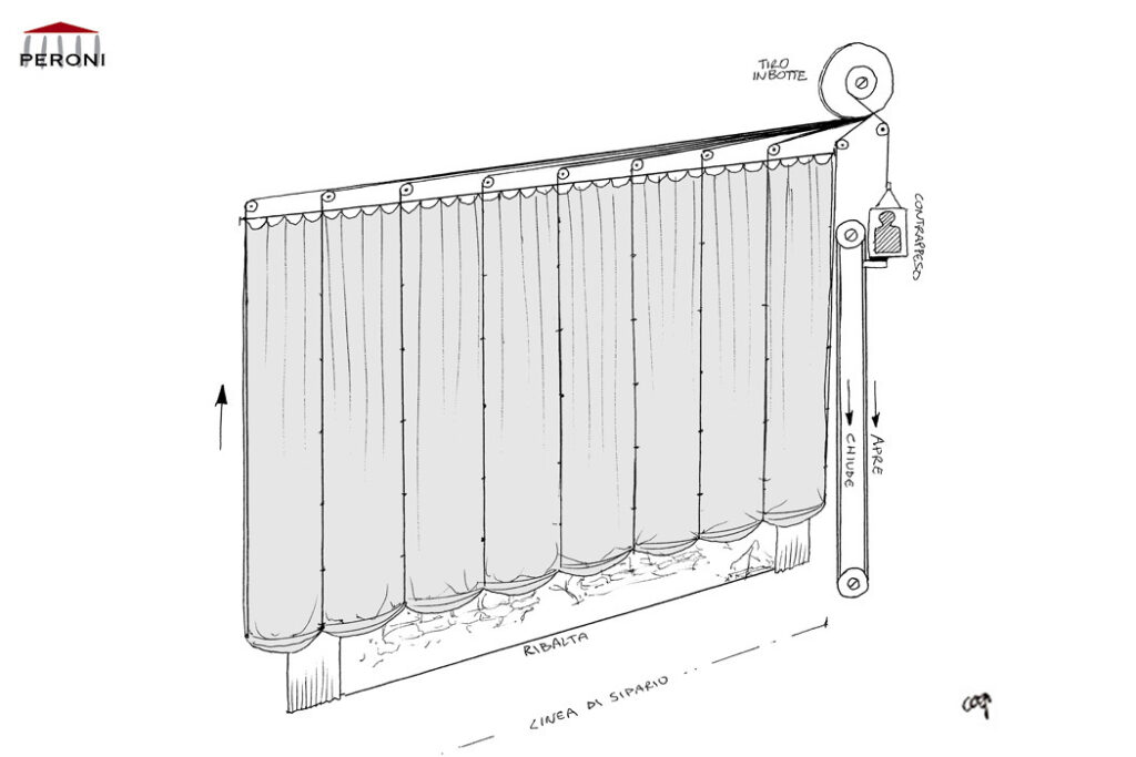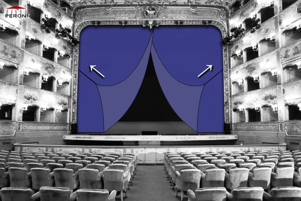 Mecanismul cortinei austriece este identic cu cel al Cortinei cu deschidere venețiană și al Cortinei cu deschidere romană. Această compactare permite deschiderea verticală chiar și pe scene cu o înălțime extrem de mică sau în spații unde lipsesc opțiunile laterale. Cortina austriacă poate fi, de asemenea, deschisă prin ridicarea întregului material cu un sistem de tip deschidere ghilotină.